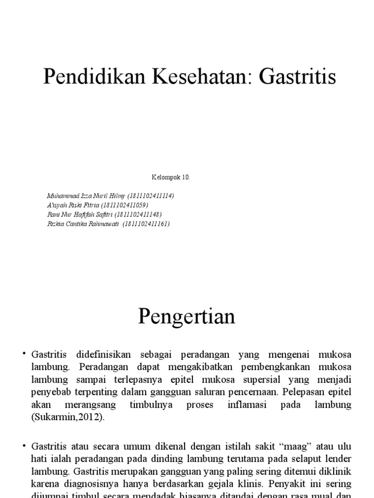 Penyebab Maag Kambuh Dari Telat Makan Hingga Akibat Penyakit Lain from www.harapanrakyat.com Gastritis merupakan sebuah penyakit yang terjadi pada lambung. Definisi gastritis merupakan peradangan yang mengenai mukosa lambung. Gastritis terjadi akibat peradangan pada dinding lambung. Orang awam sering menyebut gastritis adalah maag, padahal gastritis pada dasarnya berbeda dari maag. Oleh karena itu, sangat penting untuk mengendalikan tingkat stress agar tidak terkena gastritis. Gastritis merupakan penyakit pada lambung yang terjadi akibat peradangan dinding lambung. Gastritis merupakan panyakit karena gangguan ? Gastritis by karen delgado 7216 views.